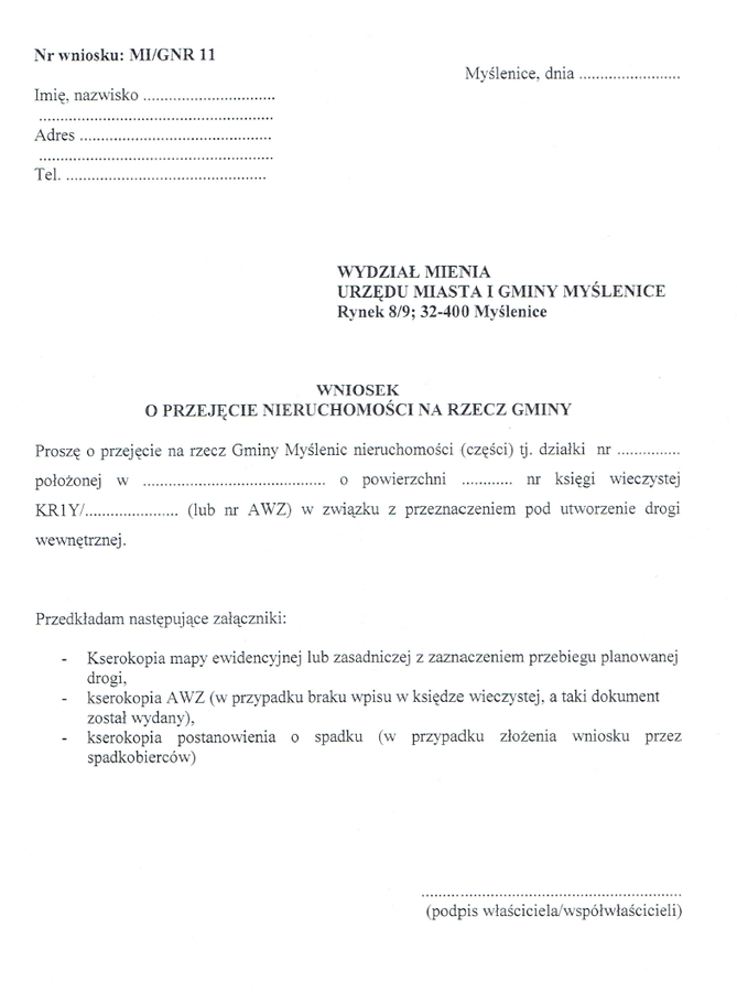 Jak przekazać drogę prywatną na rzecz gminy Myślenicy